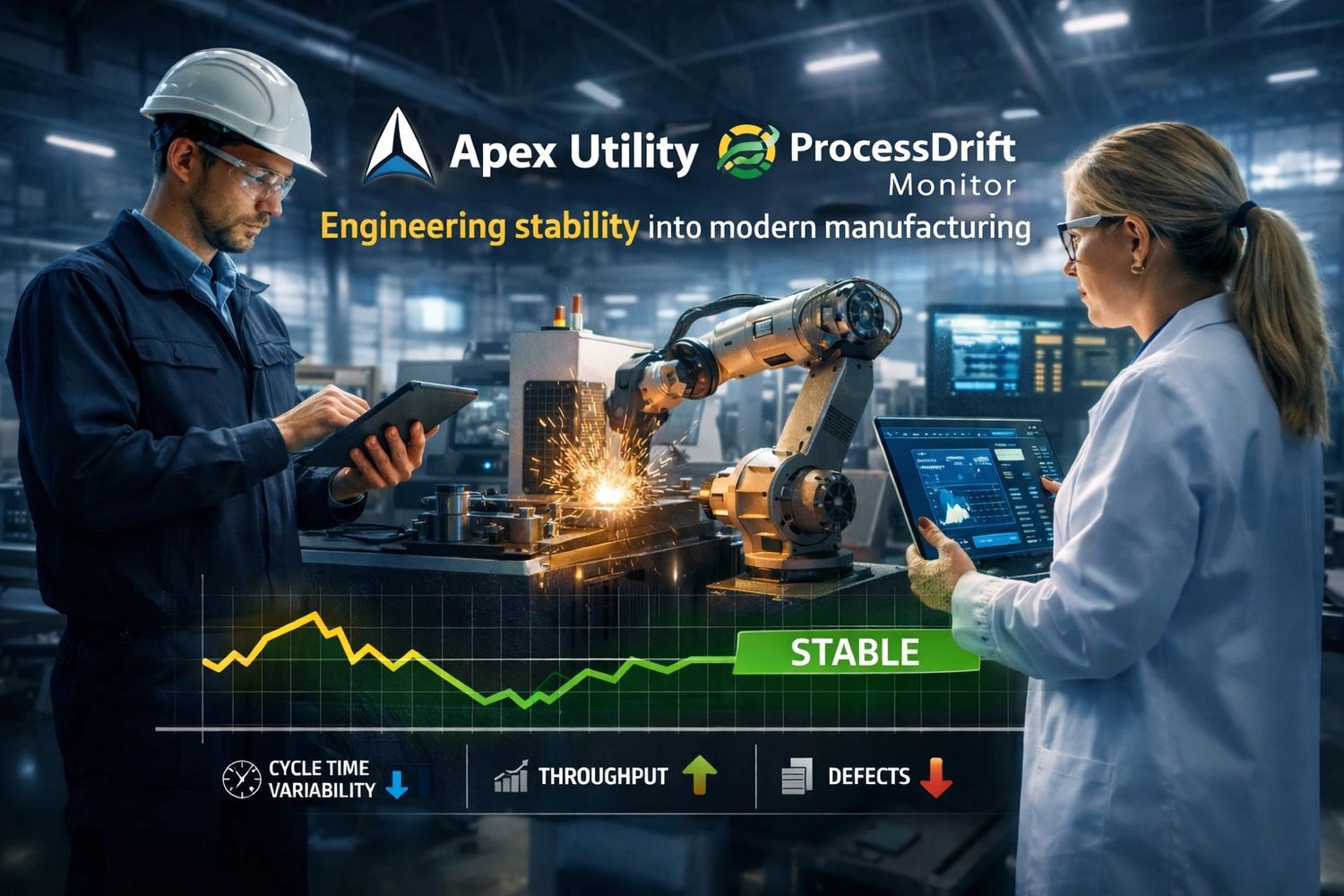 ProcessDrift Monitor, developed under Apex Utility, extends this mission by addressing one of the most overlooked sources of productivity and quality loss: gradual process drift. The platform provides early visibility into subtle changes in process behavior—before they impact throughput, margins, or compliance—using a read-only, non-invasive approach designed for real manufacturing workflows.